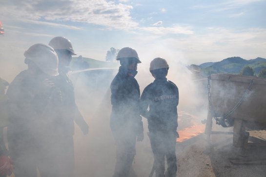 24 Jungfeuerwehrmitglieder und 6 Jugendbetreuer erlebten eine Ăbung, bei der eindrucksvoll der Zusammenhalt aller bewiesen wurde.