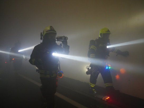 Das Erkunden der Schadenslage, die Lageführung und die Kommunikation beim Einsatz in Tunnelanlagen wurde den Feuerwehrmitgliedern nähergebracht. Vor allem die farbige Markierung mittels Blinkleuchten ist hier zu erwähnen. Sie dient den nachkommenden Trupps als wichtige Orientierungshilfe und Informationsquelle.