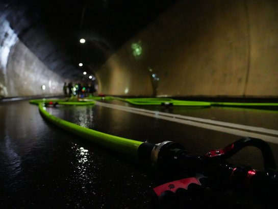 Die Taktik im Tunneleinsatz lautet “Löschen, um zu retten”. Den Atemschutzträgern wurde die Löschtaktik im Tunneleinsatz nähergebracht. Wobei hier vor allem die Strukturkühlung der Decke eine wichtige Rolle für die Statik spielt.