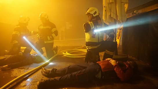 Parallel zur Menschenrettung stellte die Wasserversorgung eine weitere Herausforderung dar. Um die notwendige Löschwassermenge sicherzustellen, wurde neben der Entnahme aus einem Hydranten auch eine Relaisleitung vom nahegelegenen Sulzbach aufgebaut. Der Einsatz eines Wasserwerfers gegen Ende der Übung zeigte jedoch schnell die Leistungsgrenzen der Leitung auf.