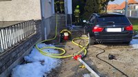 Ein Atemschutztrupp rüstete sich daher während der Anfahrt aus und begann unmittelbar nach dem Eintreffen mit der Brandbekämpfung. Zu diesem Zeitpunkt war das Erdgeschoss bereits großteils verraucht, dichter Rauch drang aus mehreren Fenstern. Der eingesetzte Trupp konnte den Brandherd rasch lokalisieren, wobei das Feuer bereits drohte, auf weitere Räumlichkeiten überzugreifen. Nach dem ersten Ablöschen flammte der Brand aufgrund der hohen Hitze immer wieder auf. Parallel dazu wurden Abluftöffnungen geschaffen, um den Brandrauch und die Hitze aus den betroffenen Räumen abzuführen.
