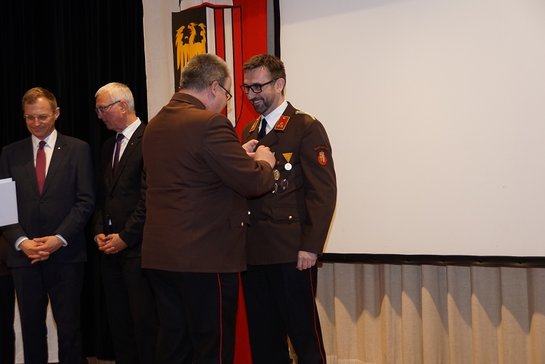 Der Bezirksfeuerwehrtag wurde auch wieder genutzt um Personen und Feuerwehrkameraden für ihre Leistungen im Bereich des Feuerwehrwesens zu ehren. So erhielt HBI Markus Schaumberger (Kommandant des technischen Zuges der FF Steyr) für die ausgezeichnete Zusammenarbeit zwischen dem technischen Zug der Stadt Steyr, bei Einsätzen aber auch bei Übungen und Schulungen, und dem Bezirk Steyr-Land von OBR Wolfgang Mayr die Feuerwehr Verdienstmedaille des Bezirkes Steyr-Land in Bronze. HBI Michael Brunthaler (FF Reichraming, Stützpunktleiter der beiden Stützpunkte Flughelfer und Waldbrandbekämpfung) erhielt die Feuerwehrverdienstmedaille des Bezirkes Steyr-Land in Silber. Für die gute Zusammenarbeit zwischen Landesfeuerwehrkommando und Bezirk erhielt Landesbranddirektor Dr. Wolfgang Kronsteiner die Feuerwehrverdienstmedaille des Bezirkes Steyr-Land in Gold.