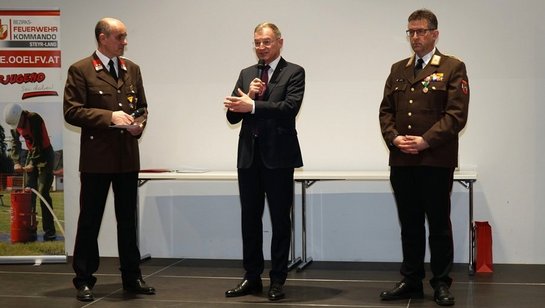 Besonders wertschätzend den Feuerwehren aus dem Bezirk konnte eine große Anzahl an Ehrengästen durch den Bezirks-Feuerwehrkommandanten OBR Wolfgang Mayr begrüßt werden. Ehrengäste waren unter anderem der Landeshauptmann Mag. Thomas Stelzer, Landesrat Michael Lindner, Nationalratsabgeordneter BGM Johann Singer, Nationalratsabgeordneter DI Gerhard Deimek, Landtagsabgeordneter Klubobmann BGM Dr. Christian Dörfl, Landtagsabgeordnete Mag. Regina Aspalter, Landtagsabgeordneter Michael Gruber, Landtagsabgeordneter Mario Haas, Bundesrat BGM Mag. Bernhard Ruf, FPräs. Robert Mayer, Bezirkshauptfrau Dr. Barbara Spöck, BGM Ing. Markus Vogl, Stellvertretend für alle BürgermeisterInnen BGM Johannes Kampenhuber, die Bezirks-Feuerwehrkommandanten der Nachbarbezirke Stellvertretend LFR Stefan Schiendorfer und die Obfrau der Wirtschaftskammer Steyr-Land Judith Ringer.