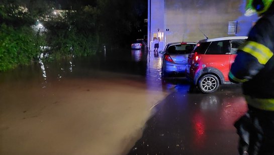 Doch an Schlaf war in dieser Nacht kaum zu denken. Nur wenige Stunden später, um 04:12 Uhr, heulten erneut die Sirenen. Der Garstner Bach war in der Lahrndorferstraße 7A und 9 über die Ufer getreten. Mehrere Fahrzeuge standen in den Wassermassen, auch Keller wurden überflutet. Die Feuerwehrleute informierten die betroffenen Anwohner persönlich über die Hausklingeln und baten darum, ihre Fahrzeuge schnellstmöglich aus dem Gefahrenbereich zu bringen.