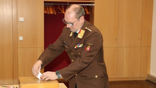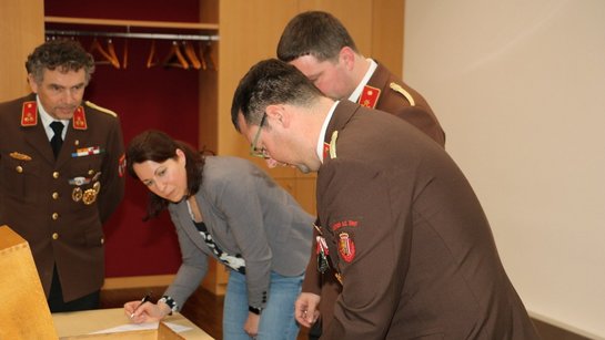 Nach der erfolgten Standeskontrolle führte die Wahlvorsitzende Mag. Verena Laußermair die Wahl der drei Abschnittsfeuerwehrkommandanten durch.