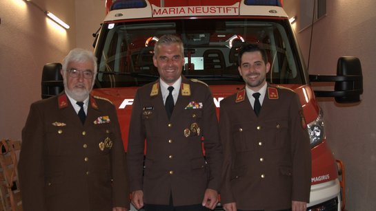 MARIA NEUSTIFT. Nach stolzen 17 Jahren im Amt legte Martin Scharrer die Funktion des Feuerwehrkommandanten zurück. In einer würdevollen Zeremonie wurde Christian Mayr zum neuen Kommandanten gewählt.