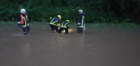 Durch die kurzzeitig aufgetretenen sehr starken Regenfälle sind Straßen zum Teil rund einen halben Meter unter Wasser gestanden, wurden gesichert und das Wasser umgeleitet. Auch Keller von Wohngebäuden mussten von den Einsatzkräften ausgepumpt werden.