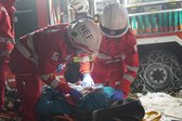 Übungsannahme war ein von der Straße abgekommener Kleinwagen, der eine Böschung hinab in den Wald gerutscht und auf der Seite zu liegen gekommen war. An Bord waren zwei Frauen, eine davon nicht ansprechbar.