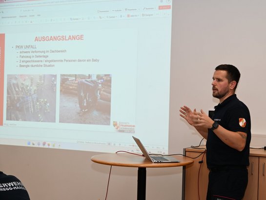 Im Anschluss wurden durch die Fachbeauftragten und Stationsverantwortlichen der Abschnittsübung, vom 04. Oktober 2024, der Fa. Hanger in Kleinraming zurückgeblickt. Es wurden die einzelnen Szenarien durchgesprochen und in Feedbackrunden erörtert.